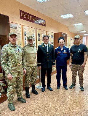 Музей Новомосковского районного суда создан в 2021 году. Он посвящен истории правосудия в г.Новомосковске. «Летопись суда» состоит из экспонатов прошлого века и нынешнего, включает в себя предметы времен Великой Отечественной войны, хранит много важных исторических свидетельств. В этом году коллектив Новомосковского районного суда с Днем рождения музея поздравили особые гости - жители Новомосковска, ветераны специальной военной операции. Открывая торжественное мероприятие, посвященное этому событию, председатель суда Сергей Щегуров поприветствовал уважаемых гостей, представил их присутствующим. Александр, контрактная служба в составе ЧВК «Вагнер-А» (2022 год), командир штурмового взвода, награжден медалями "За Отвагу», «За взятие Соледара», «За Бахмут». Валентин, контрактная служба в составе ЧВК «Вагнер-А». С 2014 года принимал участие в боевых действиях в составе ополчения ДНР, награжден медалью "За Отвагу». Александр, участвовал в боях за освобождение Запорожской области. В январе 2024 года получил ранение. После реабилитации вернулся в зону СВО, служил 4 месяца, награжден медалью "За Отвагу». Андрей, участвовал в СВО, награжден медалью "За Отвагу». Приглашенные гости – это наше настоящее! Они проявляли смелость перед лицом смертельной опасности, защищали нашу мирную жизнь и продолжали бы выполнять свой долг перед Отечеством, если бы не полученные ранения. Они поделились с коллективом суда сокровенным. Рассказали как к решению пойти служить в зону боевых действий отнеслись их семьи, что потрясло больше всего на фронте, не пожалели ли о своем выборе, что самое главное для ребят, находящихся в зоне столкновения с врагом, о своих наградах и о многом другом. На вопрос: как они приняли решение участвовать в СВО, прозвучали откровенные ответы. Александр: Наши прадеды и деды воевали, поэтому я не мог поступить иначе, не мог не пойти отстаивать честь нашей страны. Андрей: Я казак, я не мог оставаться в стороне. Боец пережил большую потерю товарищей, защищая Луганск: из 150 человек в живых осталось только 6. В семье Александра было твердое убеждение, что нужно идти защищать интересы России. Сыну было 22 года – молодой, тогда он принял решение взять ответственность на себя. Валентин, родился в Донецкой области, и вопрос о защите своего родного города и России, перед ним даже не стоял. Он принял для себя решение, это было дело чести. В качестве подарка один из ветеранов СВО исполнил песню, которая тронула всех до глубины души. Экскурсия по музею стала продолжением мероприятия. Особый интерес приглашенных вызвали близкие им по духу экспонаты времен Великой Отечественной. За чашкой чая хозяева и гости продолжали говорить о том, что волнует их сегодня. Сергей Юрьевич от лица коллектива суда поблагодарил гостей за мужество и стойкость. За то, что отстаивали честь и интересы нашей страны. Он пожелал успехов, здоровья им и их близким, мирного неба над головой! Приятной неожиданностью для участников СВО стали фотографии на память о такой незабываемой встрече. Завершилось мероприятие возложением цветов в сквере Победы к памятному камню с именами судей – новомосковцев, участников Великой Отечественной войны. Почетные гости выразили благодарность коллективу суда за теплый прием и сохранение памяти о людях, преданных своему делу и служению Отчизне.В ме