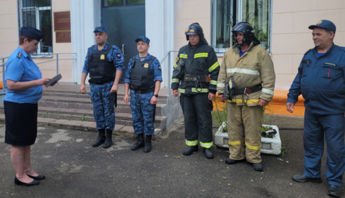 ![]() На тренировку привлекались: судебные приставы по ОУПДС – 2 человека; сотрудники Кимовского гарнизона пожарной охраны – 3 человека. В ходе проведения тренировки отработаны следующие основные учебные вопросы: - организация действий при возникновении возгорания или пожара в зданиях суда и судебных участков мировых судей; - порядок действий при возникновении возгорания или пожара в зданиях суда и судебных участков мировых судей. (по информации Кимовского районного суда) Объединенная пресс - служба судов и УСД Тульской области t.me/s/sudpress71, vk.com/sudpress71, vk.com/usd.tula |