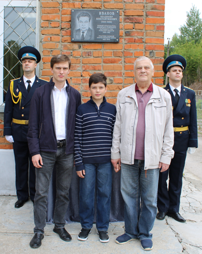 Почетное право открыть мемориальную доску предоставили внуку Иванова В.К. - Михаилу Александровичу и правнуку Владиславу.