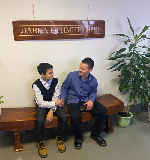 Судья Гришин И.В. рассказал ребятам о процедуре медиации, о ее преимуществах в разрешении споров мирным путем. Школьники живо обсуждали возможность использования медиации в школьных конфликтах и с удовольствием сфотографировались на «Лавке примирения».