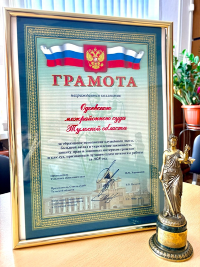 ![]() Обращаясь к коллегам, председатель суда В.И. Яшина подчеркнула значимость достигнутого результата. «Эта награда не только наших профессиональных достижений, но и слаженной работы всего коллектива. Каждый из вас внес вклад в общее дело, проявив ответственность и компетентность. Мы доказали, что можем работать на высочайшем уровне, соблюдая процессуальные сроки и обеспечивая справедливость», - сказала она. t.me/s/sudpress71, vk.com/sudpress71, vk.com/usd.tula, usd.tula.sudrf.ru |